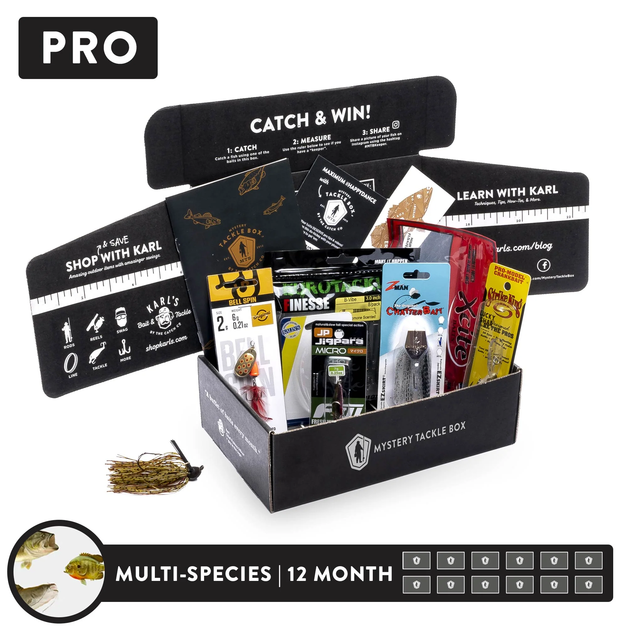 Step up your fishing game with the Pro Box - our most popular option! Each box contains 6-8 premium items worth $40, designed for anglers looking for quality gear at a great value. Perfect for learning advanced techniques while saving on top-tier tackle. This plan renews automatically every 12 months.